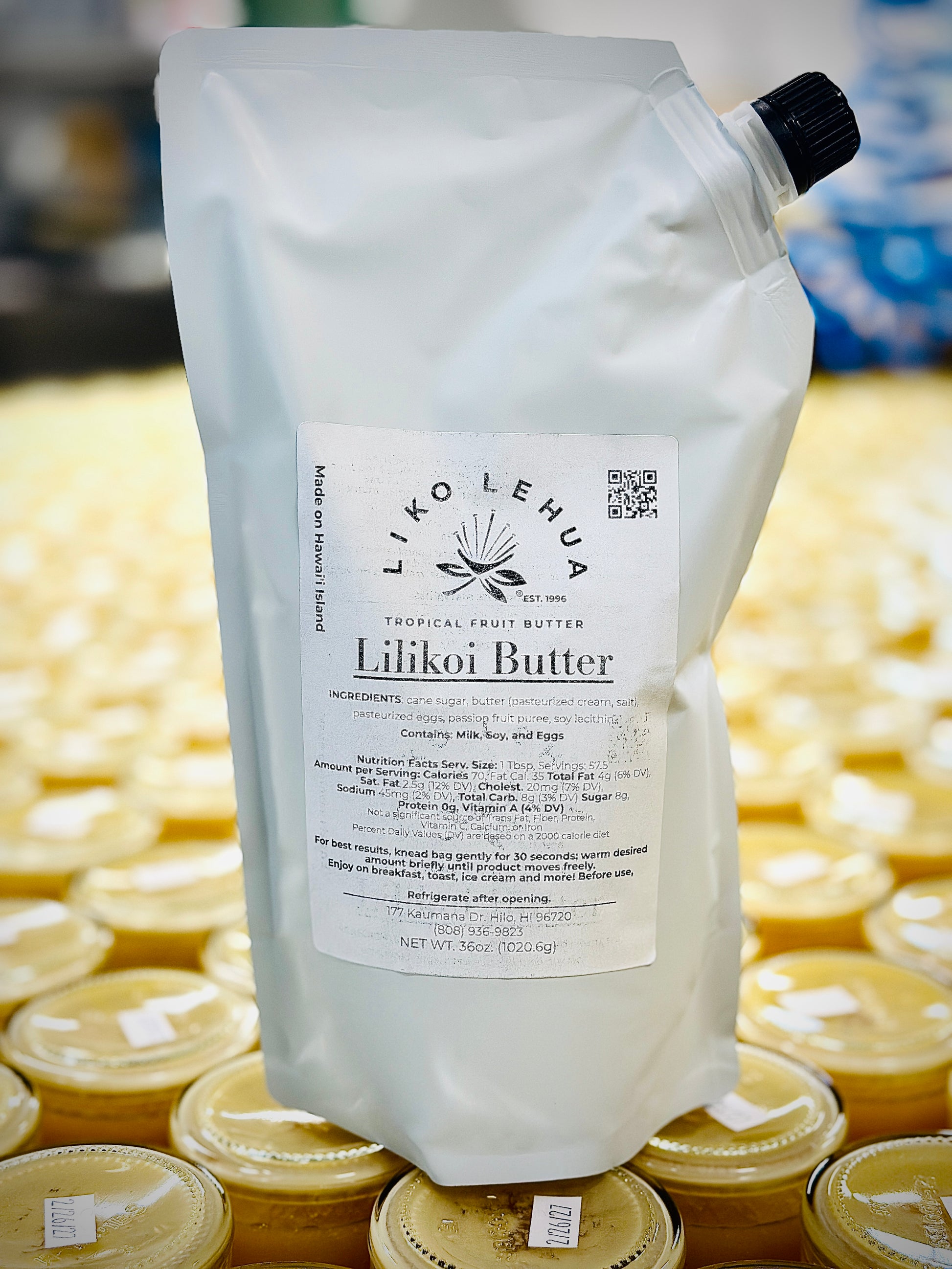 Due to popular request, we now offer some of our Famous Butters in 2.25 lb Food Service and Kitchen friendly packaging. Utilizing resealable, flexible packaging, these pouches are perfect for commercial kitchen use or for our big Ohana that use plenty! Available in our most popular flavors: Lilikoi, Guava, Mango, and Kona Coffee.